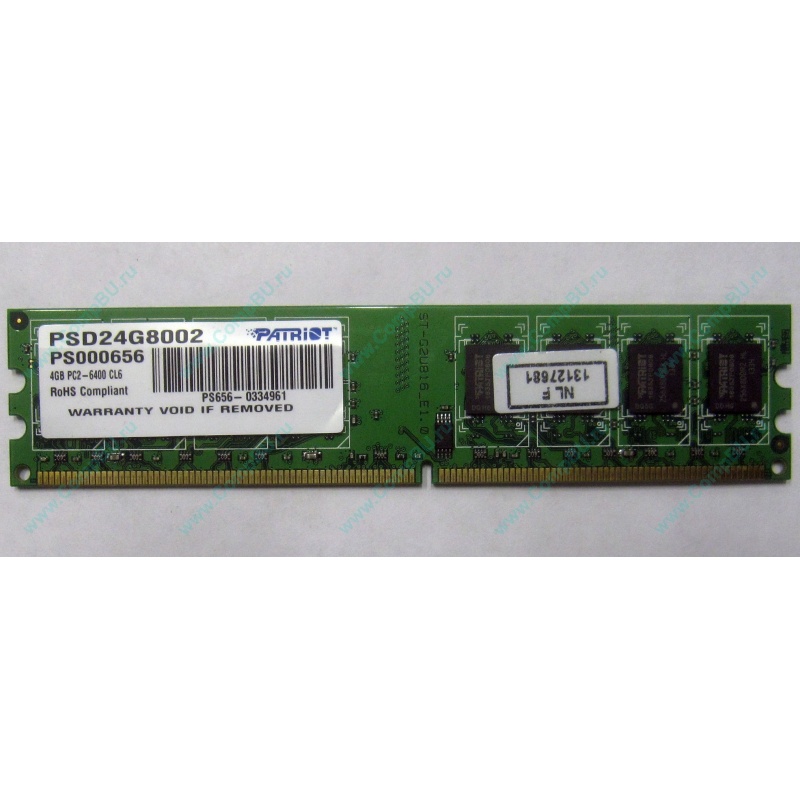 Редкий и дефицитный модуль памяти 4096Mb DDR2 Patriot PSD24G8002 PC000656 pc2-6400 CL6 (800MHz). Четыре гигабайта DDR2 одной планкой.