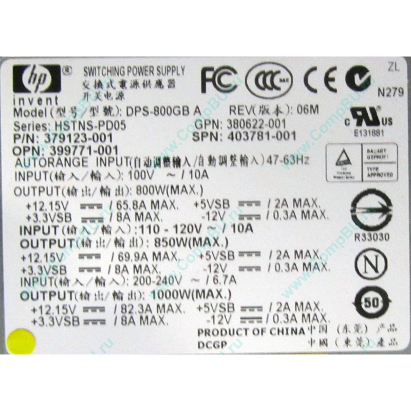 Блок питания HP 379123-001 403781-001 380622-001 399771-001 DPS-800GB A HSTNS-PD05 800W для HP Proliant G5